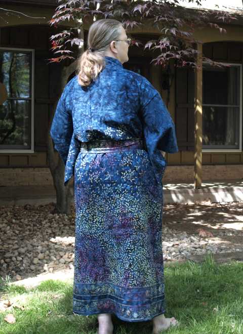 Fast forward to last October. I was at the sewing expo in Chantilly, and came across the SewBatik booth. There, I found the most amazing fabric: extra-wide hand-dyed double-border batik! 108 inches wide!! The first thing that popped into my head was, oh boy, wouldn't this make a fabulous Folkwear kimono.